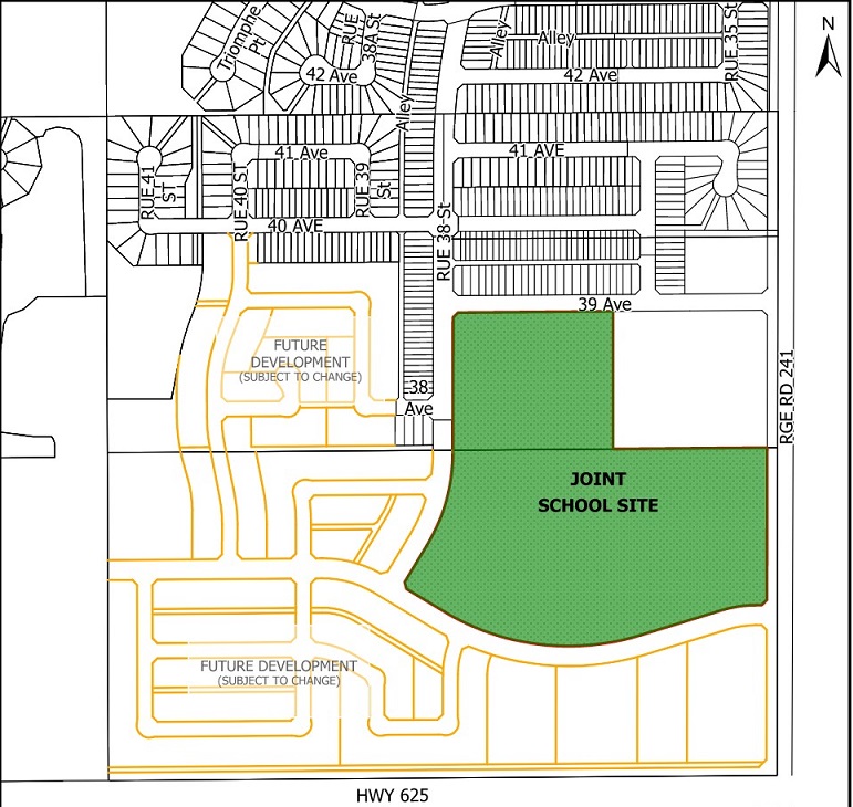 The new location is available immediately for construction upon approval of funding from the Alberta government. It will also save the City about $6 million from the estimated $12 million it would have cost to prepare and service the land south of the West Recreation Site that was initially identified last year for school construction.
